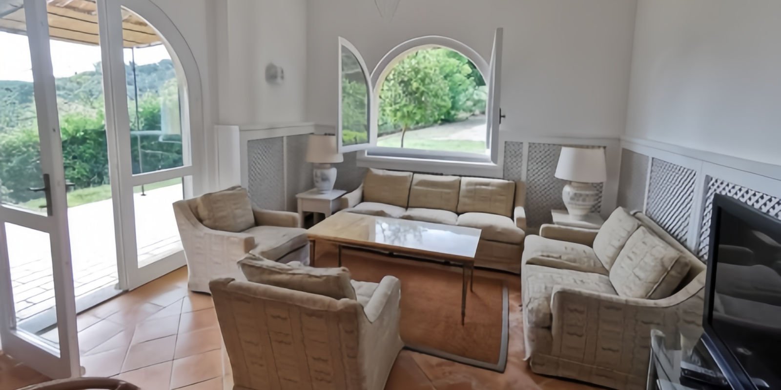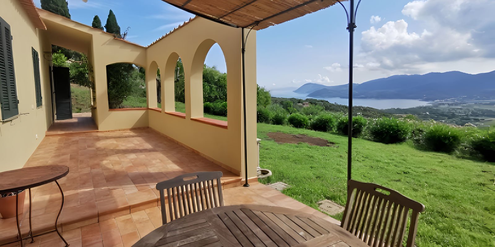 The outdoor area, lovingly cared for, offers ample space for relaxation and sweeping views of the Elba coast. Beautiful terracotta-colored Italian tiles have been laid around the house.